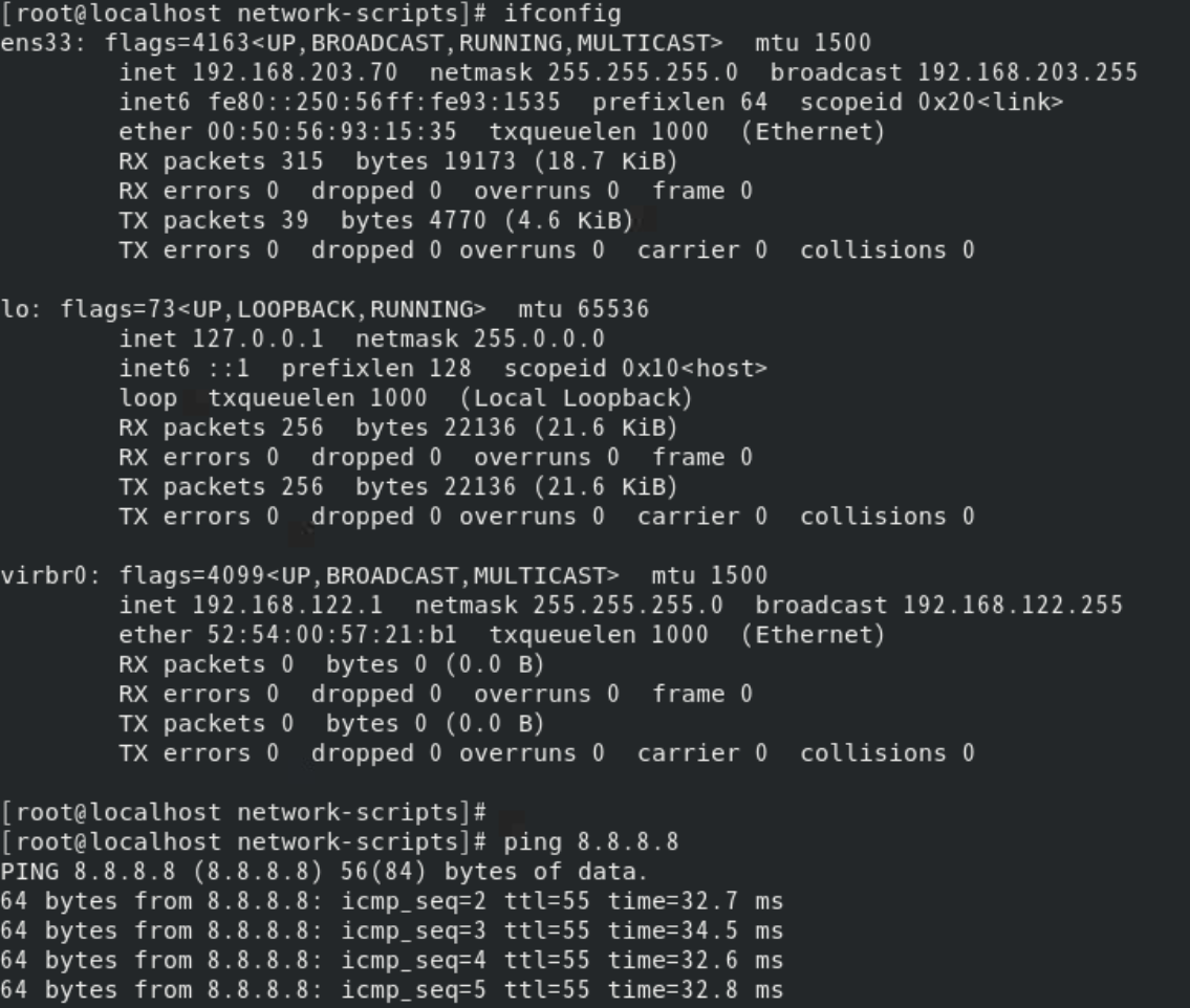 그 이후 ifconfig 명령어를 통해 다시 ens33에 대한 정보를 보면,